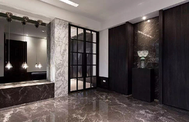 不言而喻,大理石能夠提升背景墻的整體檔次。哪怕是一片大理石,經(jīng)過簡(jiǎn)單的搭配設(shè)計(jì),可以瞬間扮靚一個(gè)客廳。